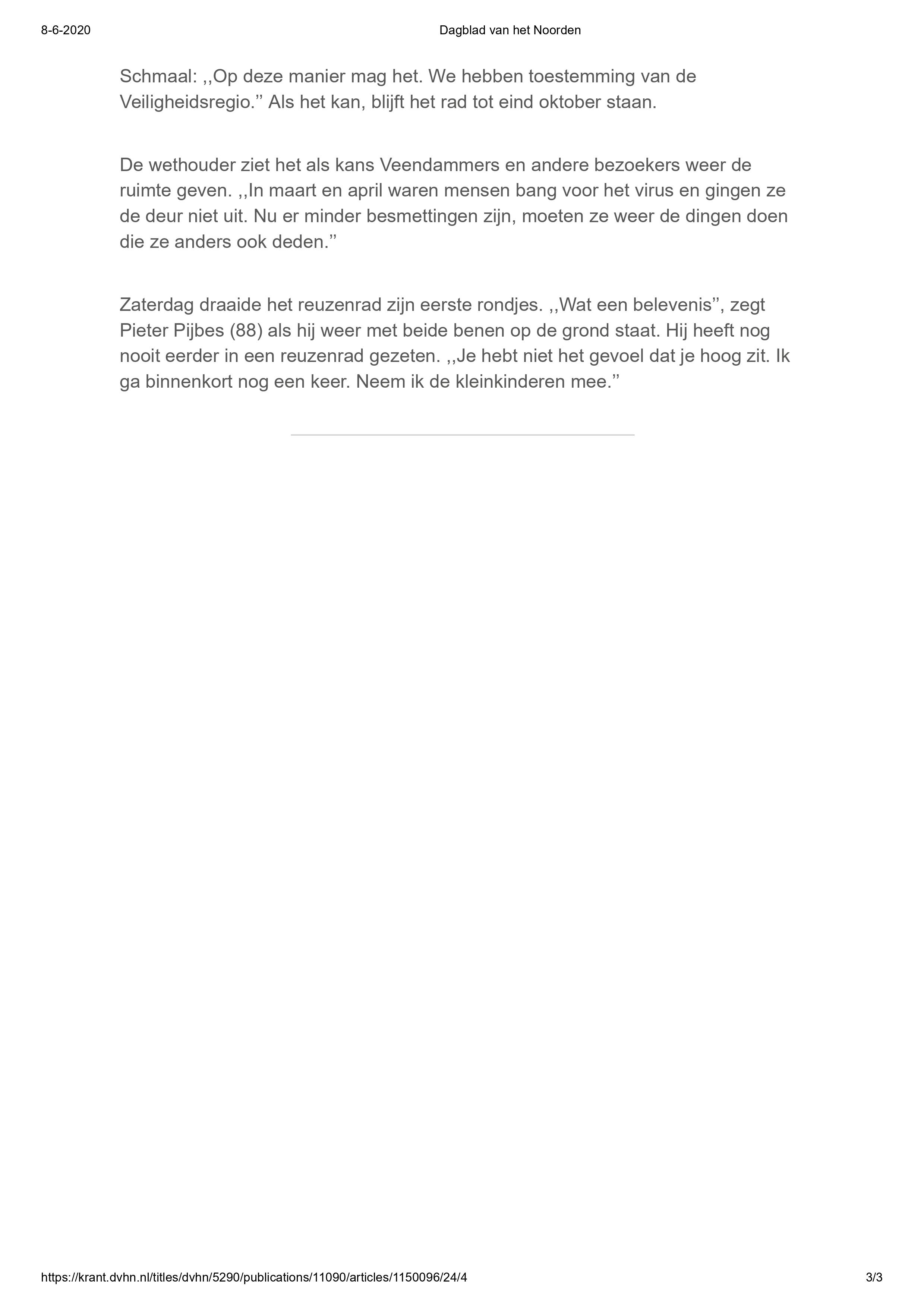 ,,De mensen hebben ook een prachtig uitzicht van bovenaf op recreatiegebied Borgerswold en de plaats Veendam en omgeving. Het is een mooie promotie voor het park en Veendam. Veendam kan zo op de kaart worden gezet.” Het is dan ook niet vreemd dat de gemeente alle medewerking verleende met de benodigde vergunningen.