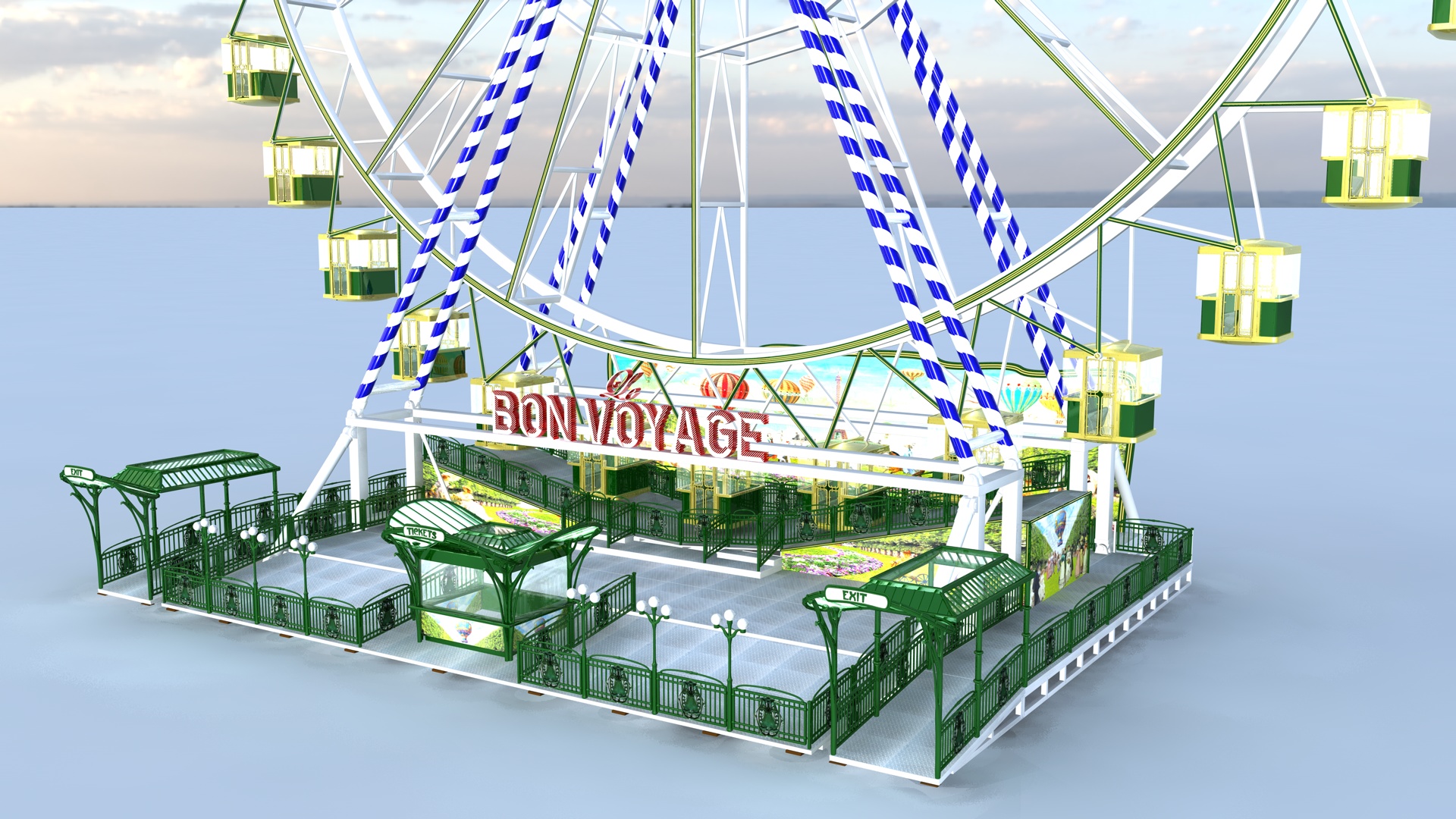 Een bijkomend voordeel van het unieke ontwerp is dat het reuzenrad een korte montagetijd heeft, omdat het wordt opgebouwd op 3 middenbouwwagens.